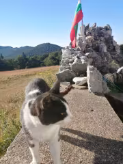В късният следобед се появи и група колоездачи поели по нелекият маршрут от връх Ком до нос Емине. Сред тях имаше и наш приятел - Стефчо, с който си поговорихме и направихме снимка за спомен. Тяхната цел за деня беше хижа Добрила и след кратка почивка поеха нататък по техният си път.