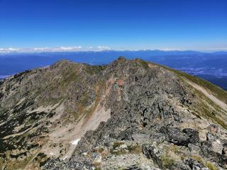 След това се спуснахме леко по ръба до началото на отсрещният склон на една от връхните точки на Стражите. Горе долу бързо се изкатерихме до тази първа връхна точка. Там се събрахме за обща снимка и се зачудихме дали да продължим през Стражите към Десилица или да се връщаме обратно по същият път.
