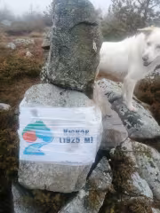 Достигнахме и до връх Кюнеко, добре че се ориентирахме с oruxmaps на телефоните, че маркировка до самият връх няма, пада се малко в страни от маркираната пътека, а в мъглата нямахме видимост. Все пак достигнахме и този връх и си щрапнахме по снимка за спомен и от връх Кюнеко висок 1925м.
