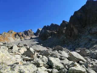 Докато достигнете до премката между Зъба и Яловарника се преминава през каменни пасажи с типичните за Пирин едри камънаци, там доста забавихме темпото, ходи се внимателно, защото немалка част от по-малките камъни не са стабилни. Последните метри се ходи по трева, но пък и наклонът започва да става по-стръмен. На премката достигнахме около 2 часа след мястото, където се разделиха жълтата и синята маркировка.