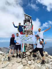 This time we climbed Mount Vihren in 3 hours and 30 minutes. We arrived just in time to meet Sara, who had actually arrived about ten minutes earlier. Shortly before the summit we were caught up by another hiker, Bozhidar, who turned out to also be from Blagoevgrad. He joined us for the group photo at the top.