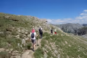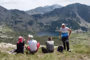Where the trail passes above the large Vlahini Lake, we stopped to wait for the others, especially Sara, who was descending a bit more slowly. After a short rest, we continued downward and reached Vihren Hut almost without stopping. We were eager to enjoy a cold beer at the hut.