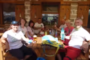 Just as we sat down for a beer, we saw other friends from Blagoevgrad arriving after their hike and invited them to join us. That day they had climbed Sinanitsa Peak. So both groups gathered around one table to talk and discuss future hikes.