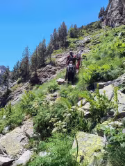 The Malyovitsa Lakes are located beneath Malyovitsa Peak, slightly away from the main marked trails, and can be reached only by several steep paths. Ushite Peak rises directly above the lakes, reaching an elevation of 2,547 meters.