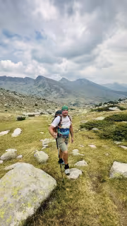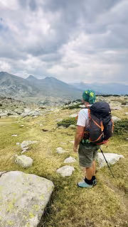 Heavy clouds began to gather, so we picked up the pace. From here to the Spano Pole shelter, we walked almost without rest, stopping only at one or two places for a short break. We passed the fork in the trail coming from the Vihren hut to the Yane Sandanski hut. It started to rain lightly. Luckily, we were close to the shelter. At around 3:20 p.m., we arrived at the Spano Pole shelter, just before the heavy rain started.