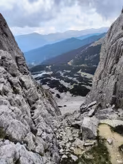 The wind brought a new heavy cloud, it became dark and cold, and our group split up again. The three of us, Mitko, Misheto, and I, took the ridge towards Sinanitsa Gate, leaving the other two to rest and eat. I took the standard route along the ridge through the gate, while Misheto and Mitko took some kind of shortcut, so I had to wait for them for about 15 minutes somewhere below Sinanitsa Gate. A word of advice from me – always take the royal road, the shortcuts are not faster or more convenient.