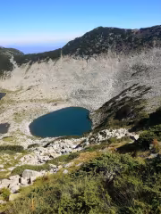 От средното езеро маркираната с жълто пътека се отклонява надясно по склона и излиза на рида между Сиврия и Джано, от там по билото се изкачихме до връх Джано. Общото време от тръгването до качването на върха беше 5 часа.