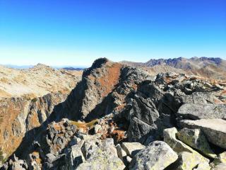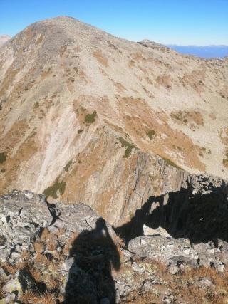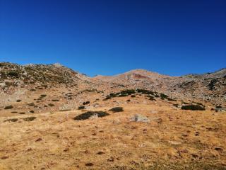 Какво да ви кажа, от тук нагоре до върха няма по-равни участъжи, все си е стръмно. Първоначално се преминава през участък в клек, добре че пътеката се прочиства и се преминава без проблеми. Следва типичният пирински камънак и морени. И така нагор стъпка по стъпка, лека полека се изкачвате до върха. Или по-точно до по-ниската от двете коти, но табелките за върха са там. Другата кота е наблизо и с 1-2 метра по-висока, то и видимо си личи това.