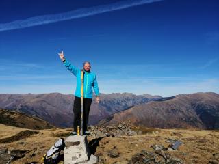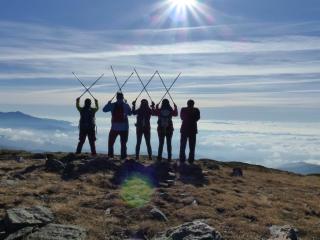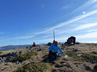 Малко последни напъни и бяхме на върха! А от Царев връх се отварят красиви гледки към Рила, Пирин и западните погранични планини. Вижда се в ниското Рилският Манастир, а над него със цялото си величие се извисява Мальовишкият дял на Рила. От началото до върха ни отне 4 часа /като се лутахме из хвойната и леко се отбихме из марковите камъни/