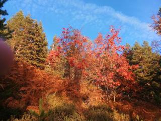 Известно време се движите по черни пътища, на места доста обрасли. Има един участък, който е пълен с дървото Калина. Особено красиво е през есента, а така като бяха скупчени десетки, дървета беше зашеметяващо в тези червени тонове.