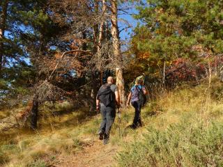 В един момент малко след калиновите дървета пътеката се отклонява от черният път и поема нагоре по склона, на места трудно се вижда от избуялата трева, но си следете маркировката, има я по дърветата, макар и по-нарядко.