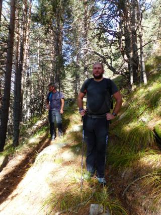 След по-продължителна почивка на Царев връх, хапване, пийване и снимки поехме надолу. В един момент от дясната стана на черният път видяхме натрупани камъни.. явно тук беше пътеката през хвойната надолу към Марков камък, на качване минахме на 20-30 метра западно и доста се озорихме през хвойната нагоре.
