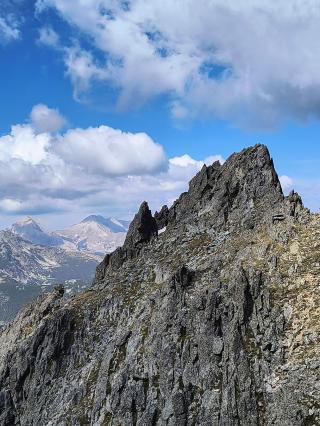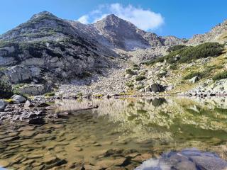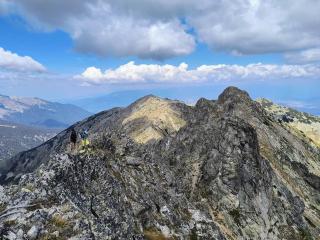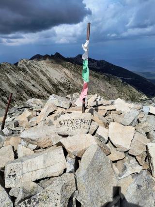 Така и направихме от там се качихме , имаше 3-4 метра леко откатерване и после излязохме на източният склон на върха, то някои го катрят от циркуса директно по този източен склон, защото е по-лесно и безопасно. Та от там до върха имахме съвсем малко за качване. На голямата стража направихме по-голяма почивка да хапнем, а и тамън беше обедно време.