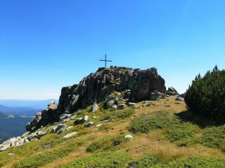 Следва стръмно изкачване до Зъбчето – една интересна скала, на която са монтирали голям метален кръст. Там си направихме по-голяма почивка, лека закуска, малко снимки и продължихме нагоре.
