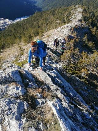 С изкачването нагоре постепенно ръбът на места ставаше по-тесен, на места би бил предизвикателен за хора, които ги е страх от високото. В групата си имахме такъв човек – Анна. Но всички и давахме кураж и тя успя да се качи до върха.