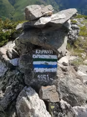 Качихме върха в едни от последните пролетни дни, преди лятното слънцестоене, тревата беше свежо зелена и хиляди цветя добавяха разноцветни краски към зеленият килим. И всичко това огласяно от чуруликането да десетки птички криещи се из тревите и ниската растителност. На върха беше много приятно и там поседяхме повечко време.