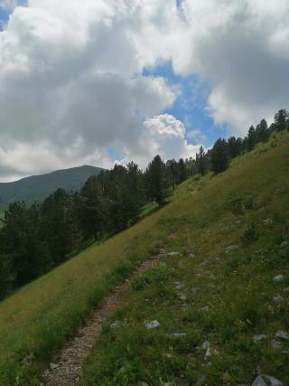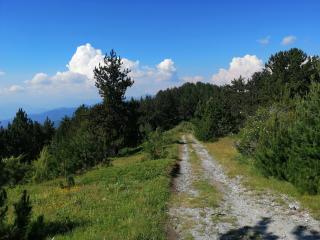 Още малко след това се достига и до поляната, където се обединяват двете пътеки, от тук до върха се следва синя маркировка. Има още малко изкачване в иглолистна гора, след което пътеката подсича връх Шабран, преминава покрай едно безводно понижение, където обикновено пасат крави и сте пред финалният склон, остават последните напъни докато достигнете до върха.