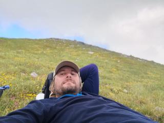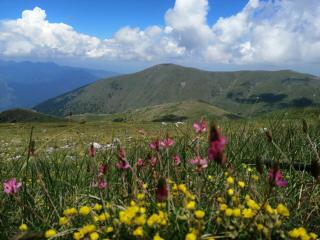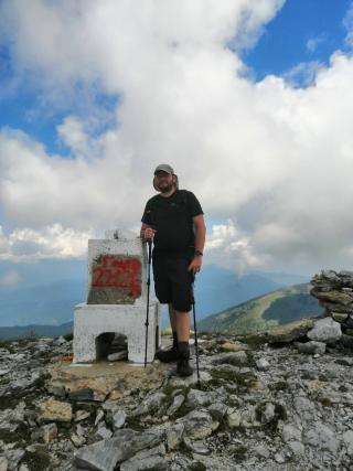 Върнахме се до върха, където си направихме по няколко снимки, хапнахме по сандвич и полежахме на тревата малко под върха преди да се решим да спуснем по пътя обратно надолу. Минахме покрай заслона Марина Поляна, където местни купонджии си бяха спретнали трапеза, към тях се бяха присъединили и една група от Североизточна България, с които се разминахме при изкачването.