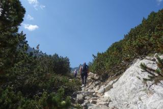 Първоначално се ходи в иглолистна гора, която след един заслон преминава в клек. След като се достигне до Суходолското езеро, клека става по-рядък. Още от рано сутринта беше топло и задушно, като цяло бавно напредвахме нагоре. До езерото достигнахме за около час и 40 минути. Там направихме почивка и допълнихме вода. Вода се пълни измежду камъните от другата страна на езерото. Това е последната точка, където може да напълните вода по маршрута към хижа Вихрен.