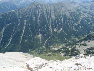 Още от Кабата се открива страхотна гледка към Влахинските Езера, Муратов Връх и Гредаро. ОТ там започва и последното стръмно изкачване на Вихрен, пътеката е песъклива и се вие на зиг-заг нагоре по склона.