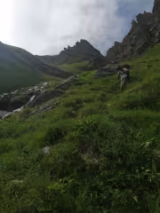 Минахме покрай едно езереце, което в момента беше пълноводно, на снимки от други планинари съм го виждал, че към есента вече е пресъхнало. Та и тук направихме грешка, вместо да хванем надясно надолу, ние хванахме наляво. Влезнахме в един стръмен улей и лека полека спуснахме до долното ниво на водопада, което е около 1990м надморска, а няколко часа преди това бяхме на над 2700м височина.