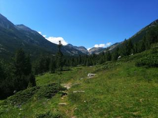 Ди хижа Демяница се ходи основно по черният път, като на няколко места има кратки пътеки, които съкращават някой и друг завой. Лека полека стигнахме до хижата, направихме кратка почивка и поехме по пътеката за Тевно Езеро, която минава по долината на река Валявица и след Превалските езера се изкачва до Мозговишка порта, от където вече до Тевното Езеро остава съвсем малко.