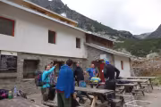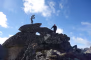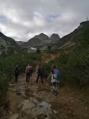 Тъкмо излязохме от заслона и се чудехме как да си позиционираме телефоните за обща снимка и пристигна следващата група, тъкмо им бяхме освободили заслона за тяхната кратка почивка. След общата снимка се отправихме към връх Камилата (2621м), който се пада точно над заслона от северната страна.