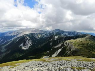 Лека полека пътеката катери нагоре до безезерният циркус под връх Пирин, казвали са ми че там някъде е последната вода, но ние напълнихме малко по надолу от рекичката. От безезерният циркус докато се излезе на билото под върха се качва по един затревен улей, който може и да се заобиколи отдясно, но пък така се удължава качването. Вече от билото до връх Пирин остава още малко изкачване.