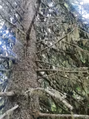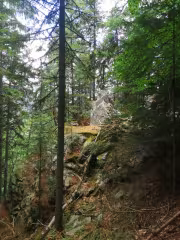 В края на тази зона с клек видяхме пресни мечи изпражнения, прясно обърнати камъни, а малко по-надолу вече в гората и пресни следи от мечка. Мечката така и не я видяхме, но до този момент ходехме леко разпокъсано, но от там надолу групата се събрахме да ходим по-компактно. Надолу по пътеката имаше на още едно място обърнати камъни от мечката.