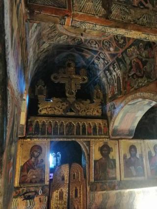 Бяхме се разбрали да се чакаме в центъра на село Добърско, пред старата вкопана черква. Тези от нас, които не я бяха разглеждали влезнаха набързо да разгледат. Черквата е много добре изрисувана и има кокетно дворче изпълнено със зеленина и различни растения. А стенописите вътре са уникални, но по принцип е забранено снимането с фотоапарати.