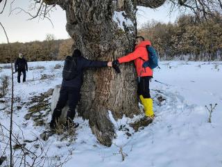 Обиколката на крушата е над 5 метра, нямахме с какво точно да я измерим, но 4 човека бяха нужни за да успеят да я обгърнат цялата. След това си направихме и обща снимка пред крушата, като от 16 човека бяхме останали само 10.