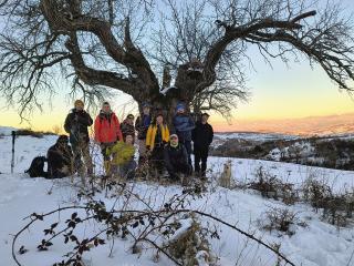Докато се любувахме на гледките към околните планини групата ни започна да се събира. Направихме обща снимка на върха и поехме надолу по обратният път. На слизане пак се разделихме на няколко групички. Едните бързаха, че трябваше да пътуват. Другите леко изостанаха. Слизането беше доста по-бързо от изкачването и не след дълго достигнахме до водоема, където се отбихме в посока към нивата, където се намира вековната круша.
