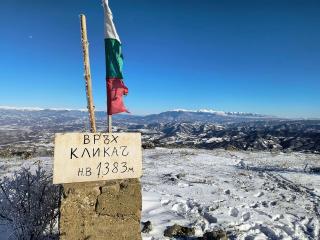 Продължихме към връх Кликач по стръмен черен път, който сега беше покрит с 10-15 см пресен вчерашен сняг. Групата се поразкъса и раздели на няколко групички, ние от първата група се качихме до върха с няколко кратки почивки на крак. Качихме се до върха за малко над 2 часа.