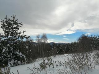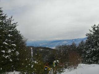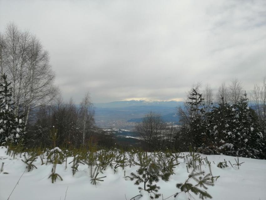 На самото изкачване към върха има гледки и към Витоша и Рила, но на самият връх е обрасло, пък и имаше немалко сняг, така че не се мотахме много. На самият връх има няколко антени, гледка се открива към град Кюстендил и осоговската планина.