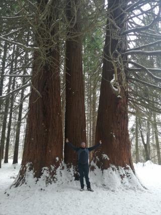 Връщането беше малко по-бързо, но като цяло в сняг се ходи по-бавно и е по-изморително. След като се върнахме при колите се отправихме към Кюстендил и село Богослов, близо до което има горичка от секвои, 3 от които са на над 130 години. Макар и съвсем малка като площ, тази горичка от секвои въздейства много ободряващо и зареждащо.