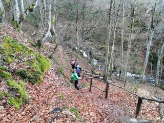 За най-горният водопад Вретеното дори има опънато въже, което да улесни достъпа до него по стръмния и хлъзгав склон. Иначе въжета имаше опънати и на няколко места по пътеката водеща до водопадите. Може би ни отне около час да достигнем и най-горният водопад.
