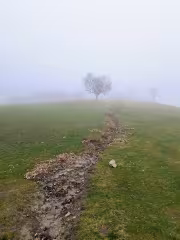 Кактто писах по-горе, до махалата Полена където има водоем се ходи по черен път с постепенно изкачване. Небето беше облачно и то с ниска облачност, а когато достигнахме Полена вече облаците ни обгръщаха в една рехава мъгла. Надеждите ни бяха мъглата да се вдигне, но така си остана през по-голямата част от деня.