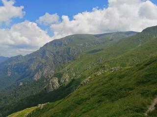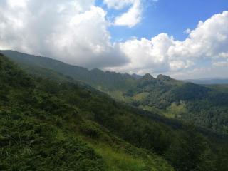 След около час излязохме на една овчарници, леко встрани от хижа Плевен. Пътеката ни поемаше отново нагоре по една изоставена ски писта. Катерейки леко нагоре се откриваше хубава гледка към хижата и околните поляни. Така лека полека стигнахме до разклона, където лятната пътека за заслон Ботев пое наляво, а зимната маркировка право нагоре към Млечният Чал.