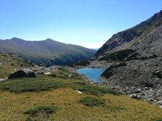 Реално тази пътека, по която поехме ние не е маркирана, дори и пирамидки няма. Или трябва да се ориентирате по GPS или да следвате рекичката, която се спуска от Маленкото езеро. До разклона взехме разстоянието за 2 часа, от там до Маленкото езеро още час. Можеше и по бързо, но по склона беше пълно с превъзходни боровинки, така и изкачването не се усеща толкова тегаво, когато човек често се навежда да си бере сладки боровинки.