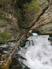 Точно там може да се обърка човек. Надясно има стръмна пътека, която ще ви отведе до долната част на горното ниво на водопада. Еко пътеката е наляво, минава покрай подножието на водопада и продължава по склона от другата страна на водопада.
