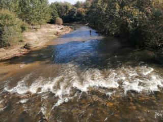 Решихме да не се връщаме на пътя към Петрич от който дойдохме, ами през село Рупите и нов черен път достигнахме до ЖП моста над река Струмешница, до него имаше и пешеходен мост по който преминахме от южната страна на реката.