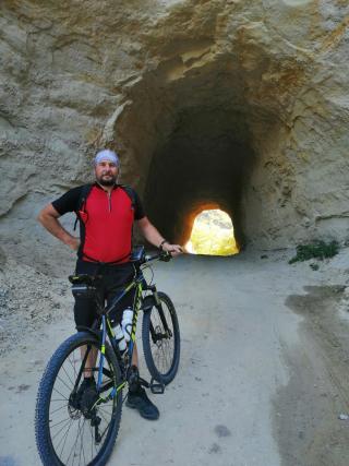 Помотахме се малко докато разтоварим колелата и си подредим багажа. След което се отправихме към село Любовище. Преди селото има интересен тунел издълбан в пясъците, то и до него общо взето бутахме, не че не ставаше за каране, просто в началото на карането не е добре човек да си дава много зор.
