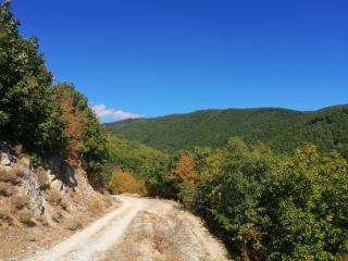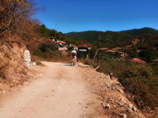 От тази най-висока точка започна едно приятно спускане към село Сугарево, като подминахме отбивката за гроба на Тодор Александров. Но след селото спускането към Кърланово беше доста друсащо, пътят осеян с един камънак, въобще неприятен терен за спускане.