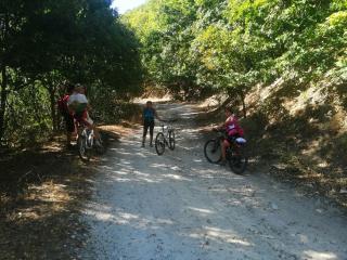 Не след дълго достигнахме и до самата пътека, отклоняваща се от пътя към водопада, но тя е кратка, има няма 50 метра. Оставихме колелата на пътя и отидохме към водопада. Там на прохлада направихме по дълга почивка, а имахме нужда от прохлада, защото денят беше станал ужасно горещ за септември.