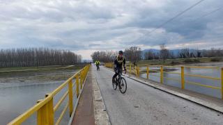 Ние продължихме с колелата по дигата, която прави елипса в северна и след това североизточна посока. Кара се по черен път, който е с дължина около 15км. Достигнахме до помпената станция, тя се намира до един малък параклис, та там си направихме обща снимка само на тези, които продължихме с колелата по черният път.