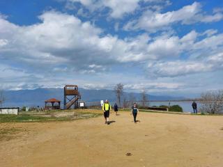 Разбрахме се следващата среща на цялата група да е в село Литотопос, където е стената на езерото и има пристанище и корабчета, с които да се разходите из езерото. Докато достигнем до пристанището, освен да караме основно по асфалта, на няколко пъти се отбихме по черни пътища покрай самото езеро с надеждата да видим розово фламинго. Видях само 1, но то бързо ме усети и отлетя.