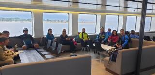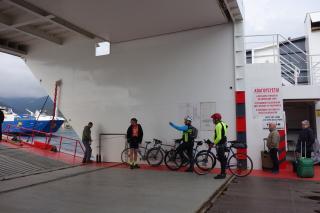 След като хапнахме събрахме пари и взехме билети за ферибота. Някои от компаниите дават отстъпка ако се спазарите, но попаднахме на такава компания (те оперират фериботи на 4 компании, като се редуват) , която не ни даде отстъпка от цената за група. Та си платихме по 5 евро на човек + 3 евро за велосипед.