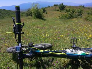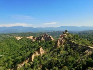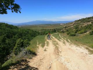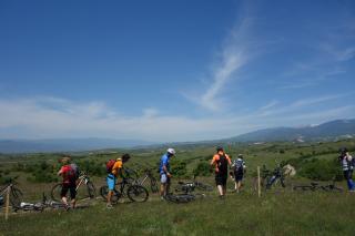 След задължителната фотосесия се отправихме към Мелник, предната година се спуснахме до село Рожен и от там по асфалта към село Кърланово. Този път си спестихме отбивката до Рожен, по един черен път излезнахме точно на превала на асфалтовият път между Кърланово и Рожен, от там до Мелник е само спускане по асфалт.