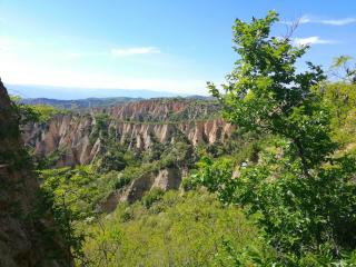 В Роженският Манастир също беше по-спокойно от обичайното, повечето хора явно все още не смееха да пътуват. Този път се отбихме по екопътеката, която води към Мелник. Оставихме колелата на една беседка и отскочихме пеша до връхната точка на пътеката. Предните две години не се решихме да дойдем в тази посока – голяма грешка. До най-високата точка се достига за 10-тина минути, а гледките от там са много красиви, виждат се голяма част от мелнишките пирамиди.