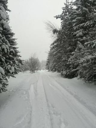 Като видяхме какъв е трафикът от автомобили към ЦПШ Мальовица, на отбивката за хижа Вада променихме плана. Оставихме колите на отбивката и поехме пеш до хижа Вада. Върви се по път, по който също минават джипове до хижата, така че имаше утъпкани коловози в снега. А снеговалежът ту забавяше, ту ставаше много интензивен. До хижа Вада стигнахме за малко над час.